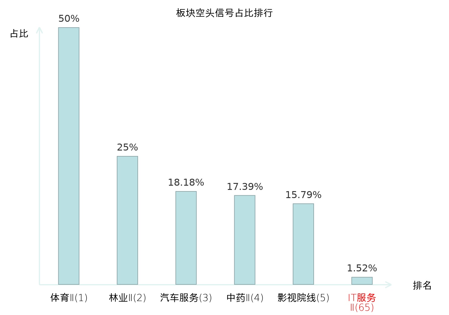 全市场所有行业板块中主力空头信号占比排名中,体育Ⅱ板块位居第一。文娱用品板块名次提升最快,较昨日上升101位。