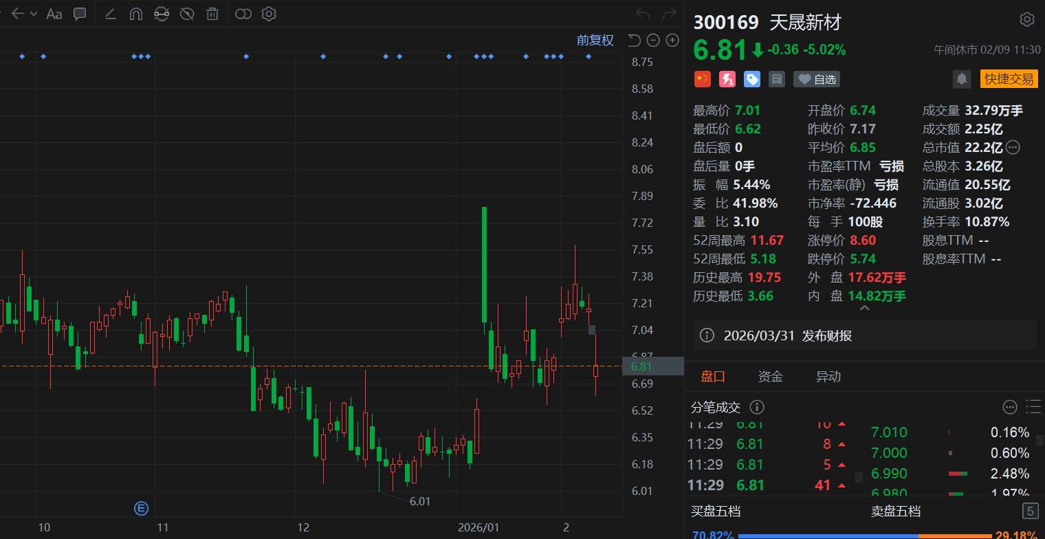 A股异动丨被证监会立案,天晟新材午间收跌5%