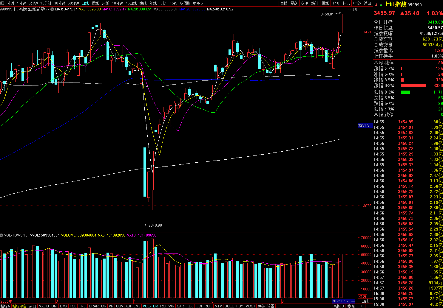 指数点评:此前反复强调 3430 点压力位,今日早盘虽出现小幅波动,但午后在量能持续释放的推动下,指数成功站上该点位。后续市场能否延续攻势成为关键。从技术层面看,3430 点将转化为短期支撑位,而上方 3493 点附近存在一定阻力。若市场开启大盘系统性行情,金融板块大概率会保持活跃态势,且成交量需维持在相对稳定水平(例如保持 1.4 万亿元以上);若成交量出现萎缩,则市场可能进入震荡整理阶段,届时非金融属性的题材股和个股机会将成为关注重点,需注意甄别和跟踪