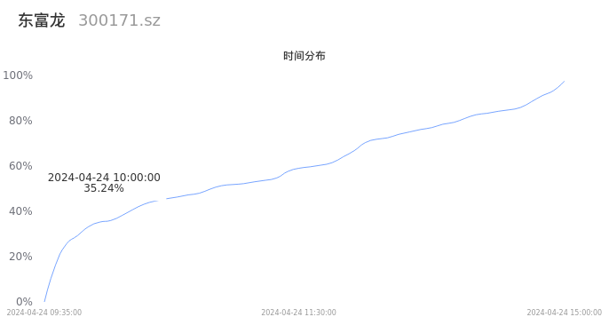 根据成交分布分析,该股票当天缩量成交,成交清淡。时间上看,早盘前半小时成交量占据当天总成交量的35.24%;价格上看,成交呈现中间峰。成交分布分析主要研究股票成交的分布特性,不具有预测功能,请知悉。