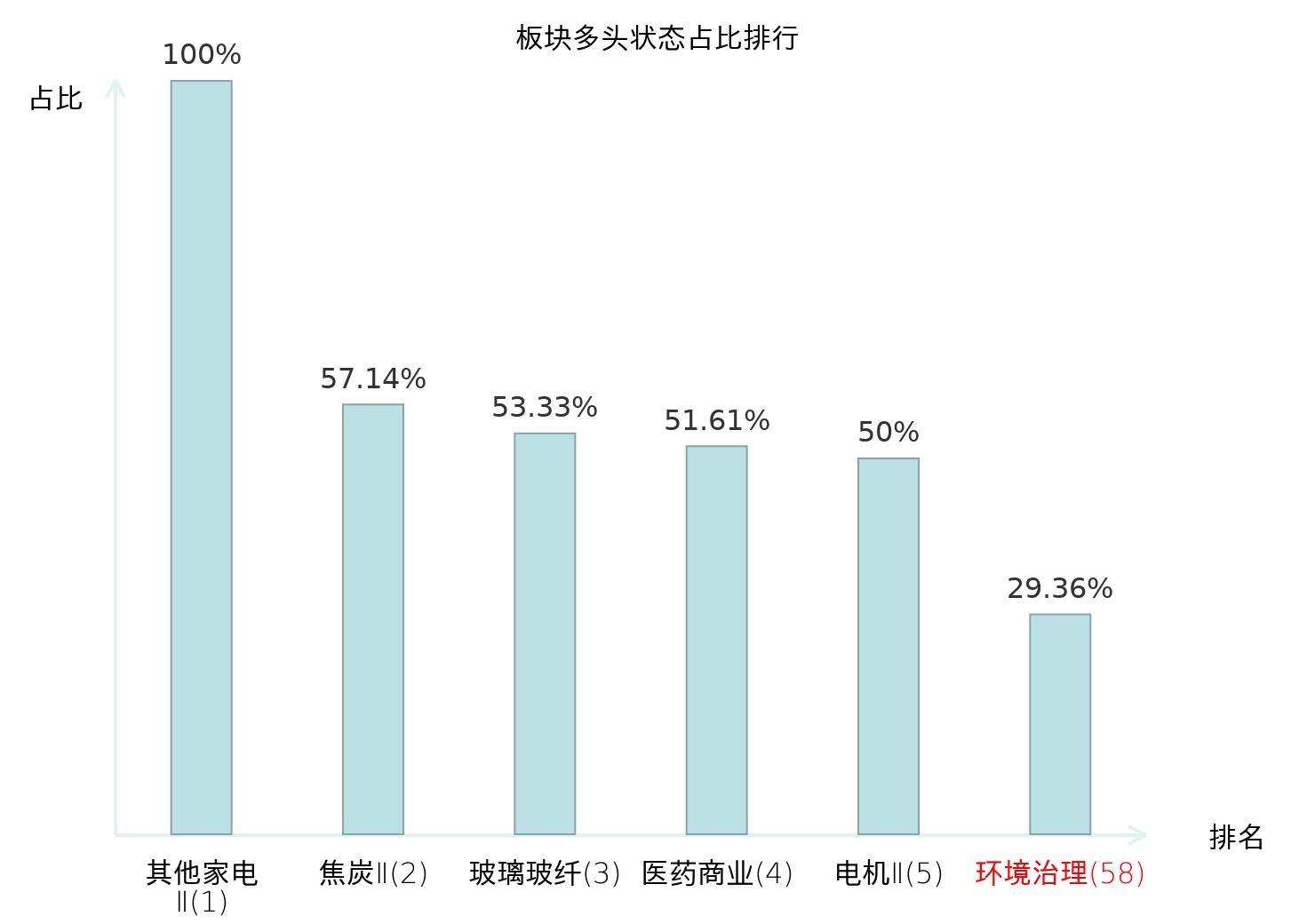 全市场所有行业板块中主力多头状态占比排名中,其他家电Ⅱ板块位居第一。白色家电板块名次提升最快,较昨日上升67位。