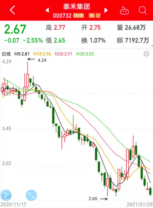 股价方面,截至最新收盘,泰禾集团跌2.55%,近5日主力资金净卖出6433.65万元。该股在2020年7月7日爆出15亿债券违约以来,股价累计下跌61.86%,总市值由179亿元跌到现在的66.45亿元,目前还有4.67万户股东。