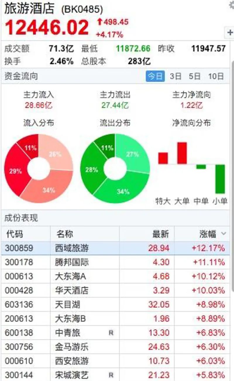今日早盘,旅游酒店板块持续活跃,大东海A、华天酒店双双涨停,腾邦国际、西域旅游连续大涨。