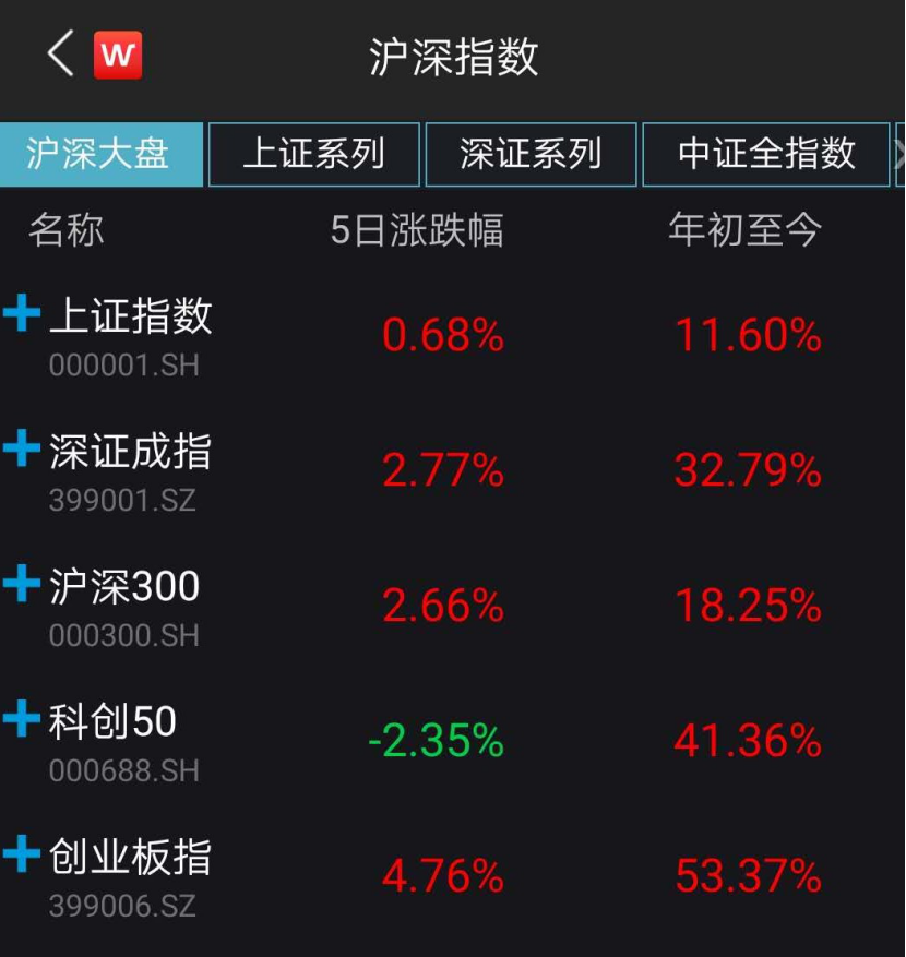 8月28日在权重板块强势带动下,A股三大股指低开高走,全线飘红。截至收盘,沪指周K线实现五连阳,创业板指全周涨幅达4.76%,远超沪指及深成指。