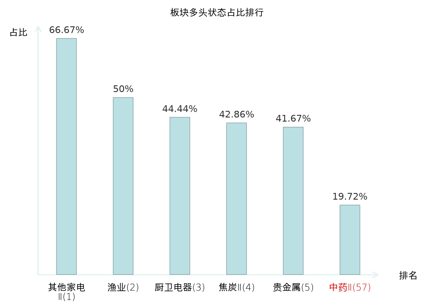 全市场所有行业板块中主力多头状态占比排名中,其他家电Ⅱ板块位居第一。乘用车板块名次提升最快,较昨日上升82位。