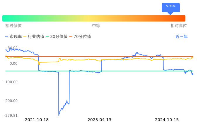 2024年10月15日,力源信息下跌1.01%收于9.82,今日成交金额33.01亿。下文将从市盈率PETTM、市净率PB、市现率3个角度去分析公司估值情况。