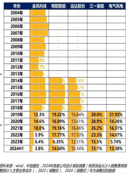 ①整机制造:2024 年前五大厂商(金风、远景、明阳、运达、三一重能)市占率 75%,前十家达 98.6%。金风科技新增装机 18.67GW(市占 21.5%),明阳智能海上风电市占率 31%。