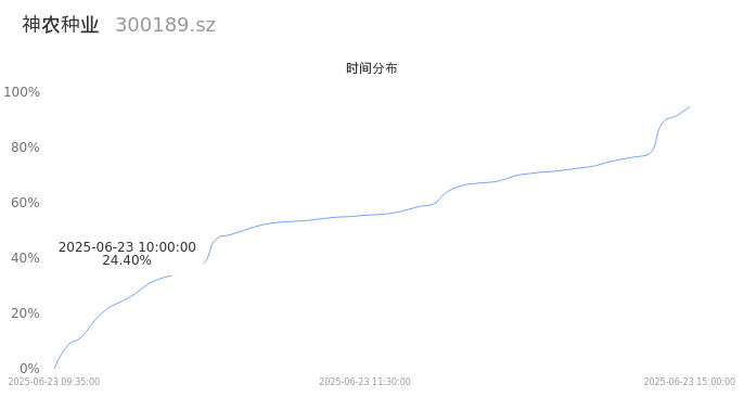 300189神农种业2025年06月23日成交75.53万手,成交金额3.23亿,相较昨日放量10.47万手,换手率8.52%,成交清淡。