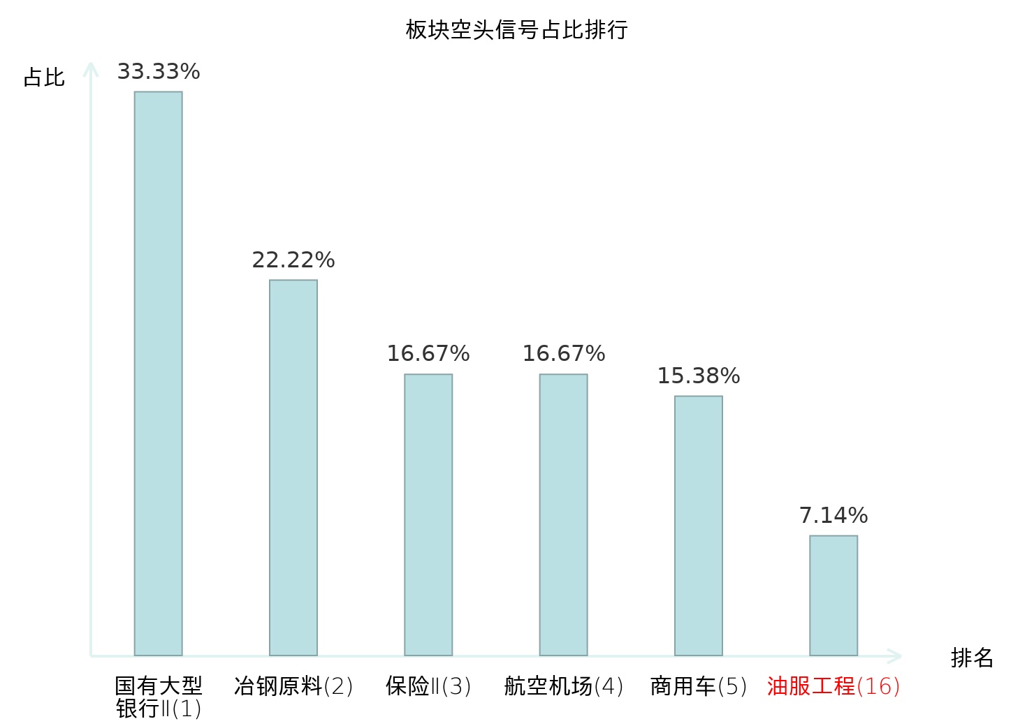 全市场所有行业板块中主力空头信号占比排名中,国有大型银行Ⅱ板块位居第一。航运港口板块名次提升最快,较昨日上升113位。