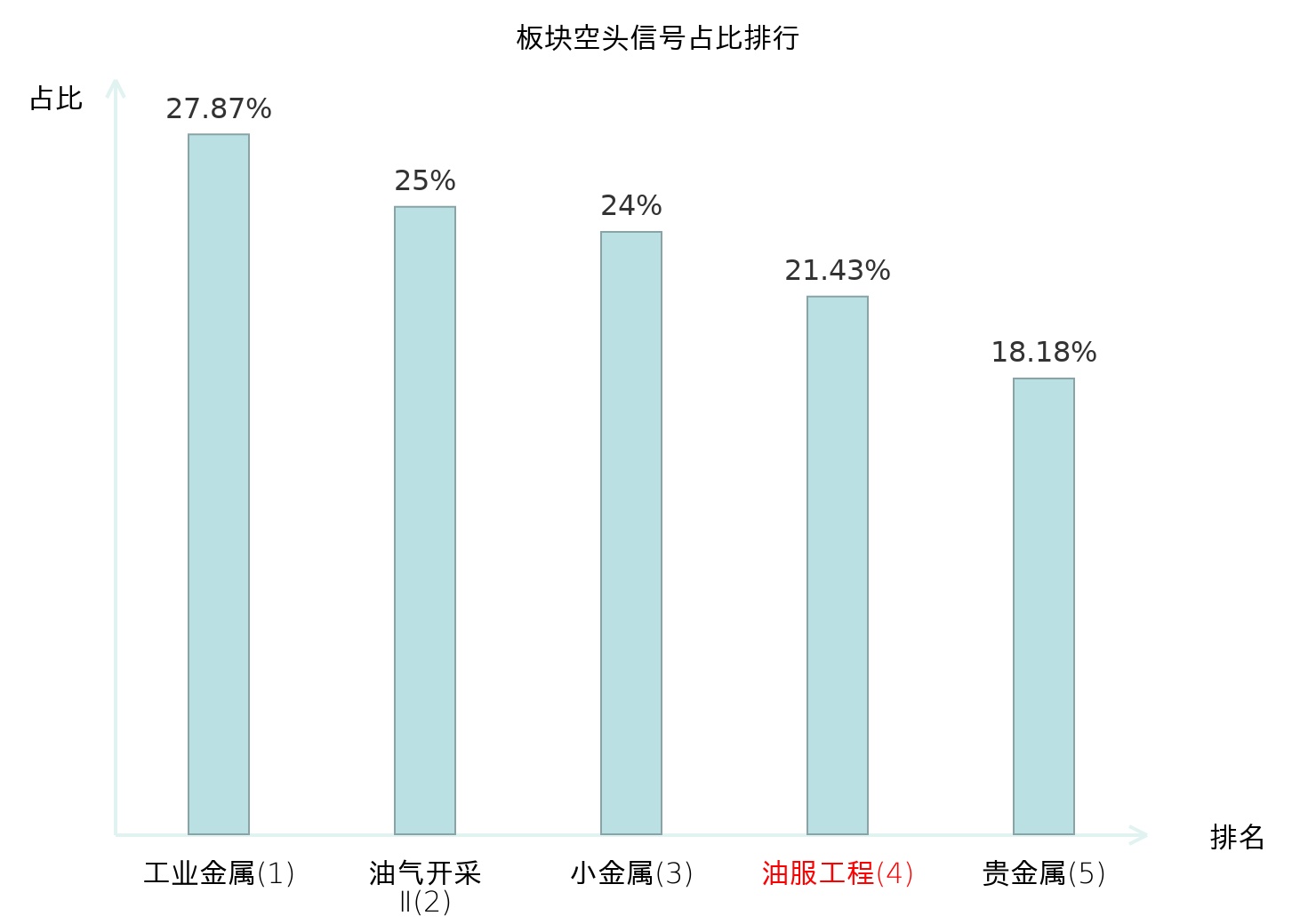 从主力宝信号数据分析,潜能恒信所属的油服工程板块中共3只股票发出主力空头信号,主力空头信号占比在全行业中排名第4位,较昨日上升66位;较高的排名表明主力对于该板块整体看空意愿较强,此次排名大幅上升可能反映了主力对该板块态度的明显强化;全市场所有行业板块中主力空头信号占比排名中,工业金属板块位居第一;饲料板块名次提升最快,较昨日上升112位;这些变动揭示了不同行业间主力资金偏好的分化趋势,为投资者评估市场风险分布提供了客观依据。
