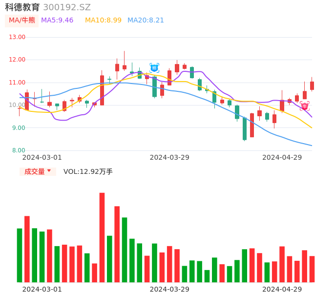 04月29日,科德教育收报11.03,股价涨幅3.96%,成交金额1.41亿元,换手率5.63%。
