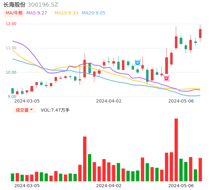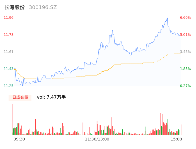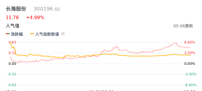05月06日,长海股份收报11.78,股价涨幅4.99%,成交金额8664.95万元,换手率3.03%。