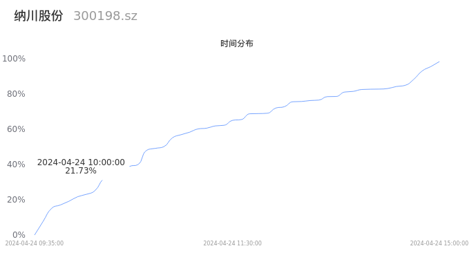 300198纳川股份2024年04月24日成交25.20万手,成交金额3758.24万元,相较昨日缩量1.56万手,换手率2.77%,成交清淡。
