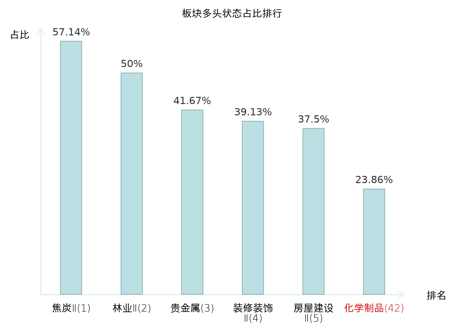 全市场所有行业板块中主力多头状态占比排名中,焦炭Ⅱ板块位居第一。白色家电板块名次提升最快,较昨日上升84位。
