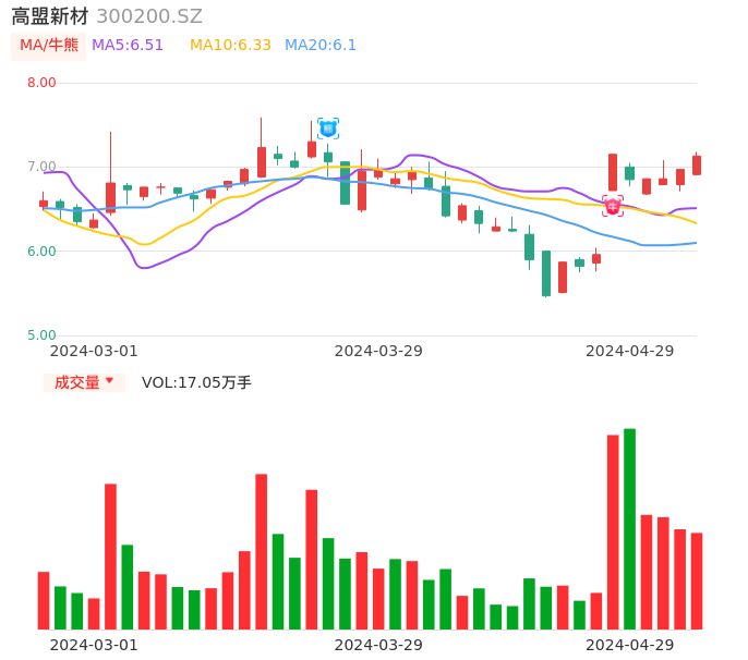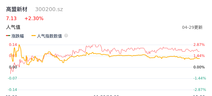 04月29日,高盟新材收报7.13,股价涨幅2.30%,成交金额1.21亿元,换手率4.02%。