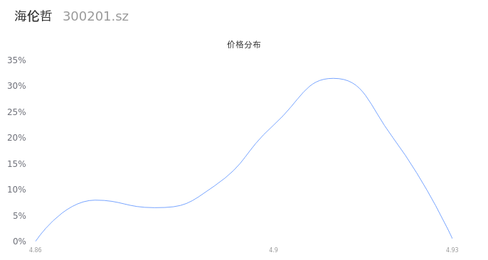 然后我们来看下当日成交的价格分布。经过分析发现,该股票当日成交价格波动低于10个最小波动价位,由于可以参考的样本量非常少,价格分布分析的结果不具有指导意义,下图仅供参考。