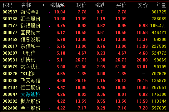 数字货币概念20日盘中大幅拉升,截至发稿,海联金汇、汇金股份涨停,御银股份逼近涨停,国民技术、信息发展、东信和平、飞利信、优博讯、数字认证等涨幅超5%。
