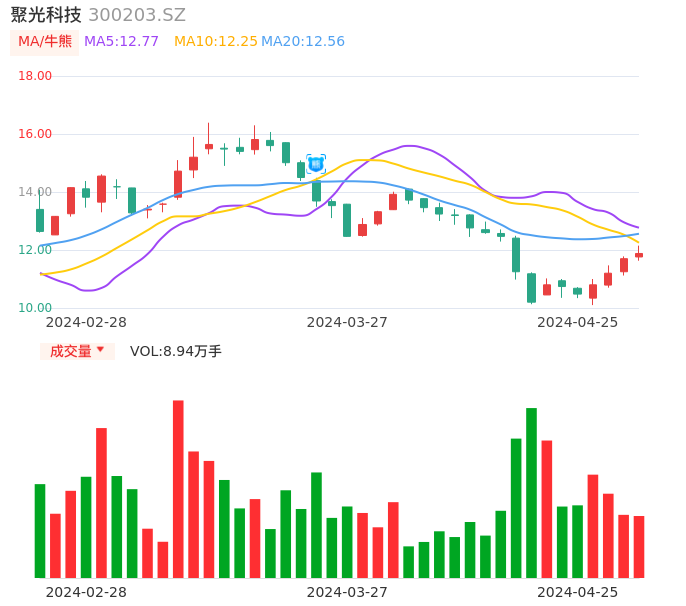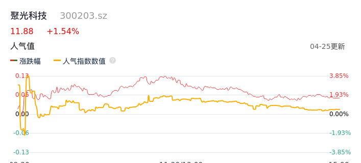 04月25日,聚光科技收报11.88,股价涨幅1.54%,成交金额1.07亿元,换手率1.99%。