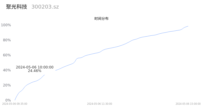 300203聚光科技2024年05月06日成交8.07万手,成交金额1.03亿元,相较昨日放量8358手,换手率1.80%,成交清淡。