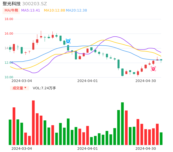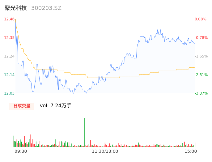 04月30日,聚光科技收报12.33,股价涨幅-0.96%,成交金额8813.94万元,换手率1.61%。