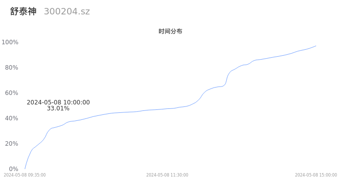 300204舒泰神2024年05月08日成交30.33万手,成交金额2.22亿元,相较昨日放量20.70万手,换手率6.43%,成交清淡。
