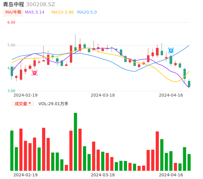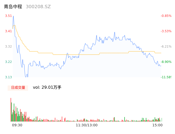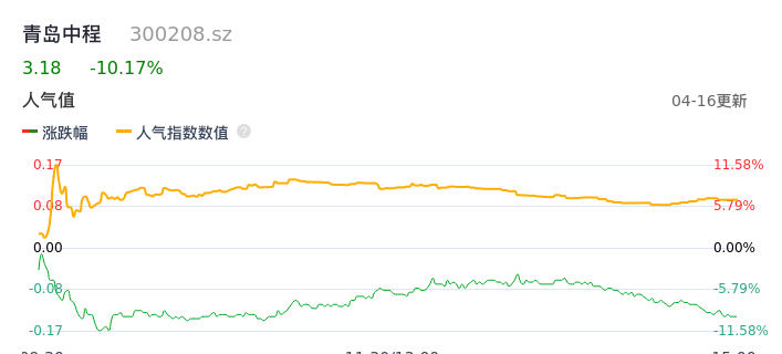 04月16日,青岛中程收报3.18,股价涨幅-10.17%,成交金额9516.84万元,换手率4.22%。