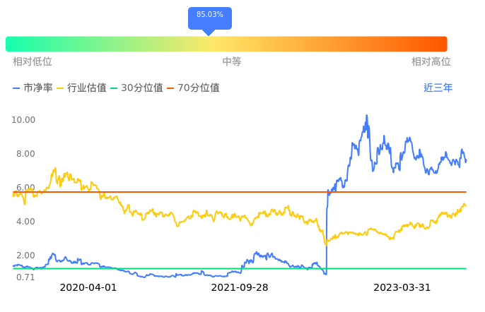 有棵树当前市净率PB为7.67,在所属的软件开发中,市净率PB排96,前五名分别为*ST泽达市净率0.51、中电兴发市净率1.08、ST国华市净率1.48、理工能科市净率1.48、天融信市净率1.57。有棵树当前市净率PB为7.68,超过近3年85.03%的历史数据。
