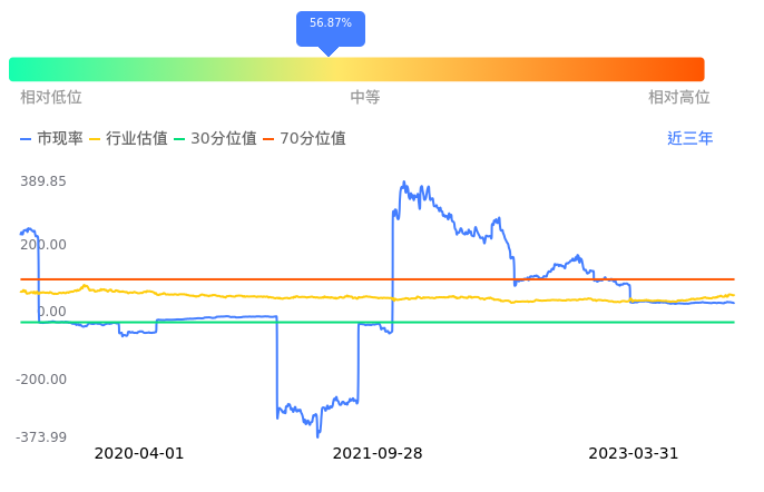 2023年03月31日,有棵树上涨2.43%收于5.91,今日成交金额5166.68万元。下文将从市盈率PETTM、市净率PB、市现率3个角度去分析公司估值情况。