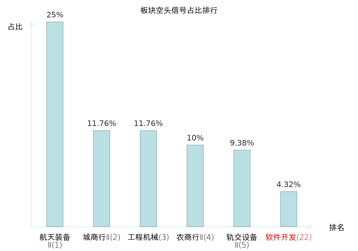 从主力宝信号数据分析,有棵树所属的软件开发板块中共6只股票发出主力空头信号,主力空头信号占比在全行业中排名第22位,较昨日上升34位。排名越高说明主力当日卖出意愿越强。全市场所有行业板块中主力空头信号占比排名中,航天装备Ⅱ板块位居第一;出版板块名次提升最快,较昨日上升106位。这些变动反映了主力资金在不同行业间的动向,为投资者提供了关于市场情绪和潜在投资机会的重要线索。