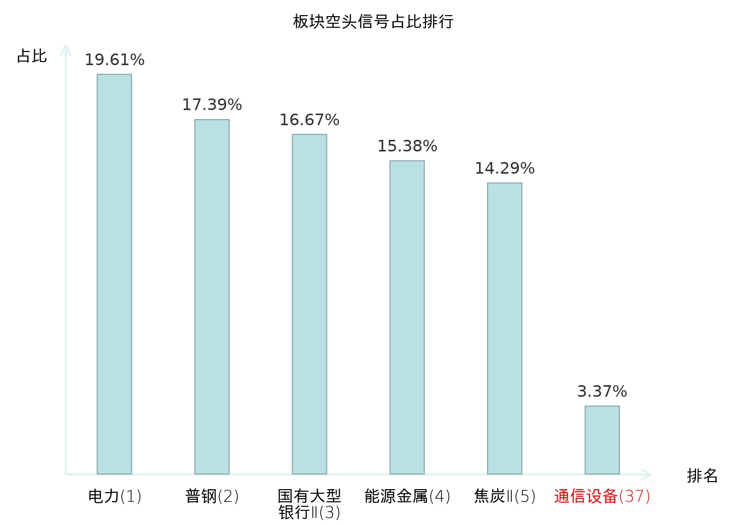 全市场所有行业板块中主力空头信号占比排名中,电力板块位居第一。服装家纺板块名次提升最快,较昨日上升107位。