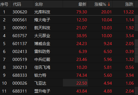 上证报中国证券网讯 8月13日早盘,商业航天概念再度活跃,截至9时44分,光库科技20cm涨停,走出2连板,航天科技走出7天5板,烽火电子、大元泵业涨停,佳讯飞鸿等跟涨。