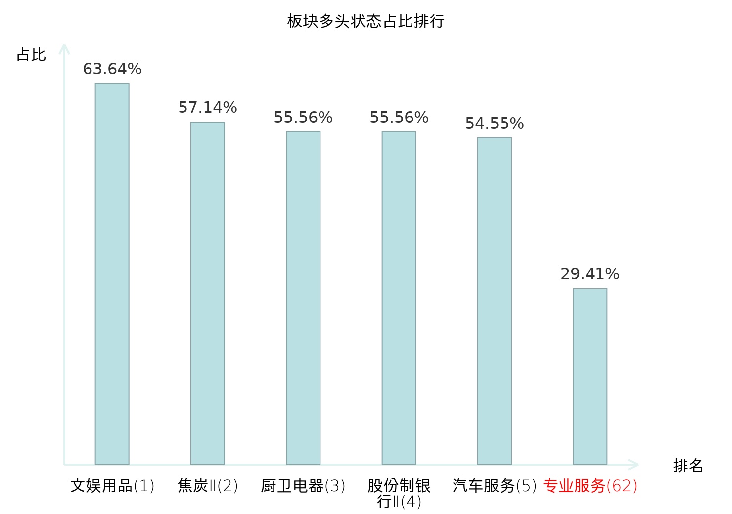 全市场所有行业板块中主力多头状态占比排名中,文娱用品板块位居第一。焦炭Ⅱ板块名次提升最快,较昨日上升54位。