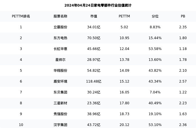 从估值角度看:东方电热最新市盈率PETTM为10.95,在行业内排名2/25,处于15.44分位。