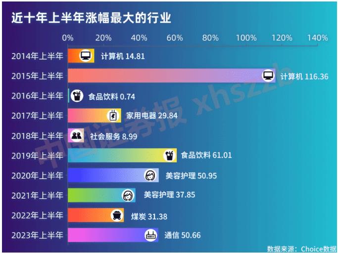 2023年上半年行情已经收官。回顾近十年A股市场半程表现,究竟哪些个股独领风骚?经历热点轮动、市场主线“风水轮流转”后,又有哪些行业板块笑到了最后?