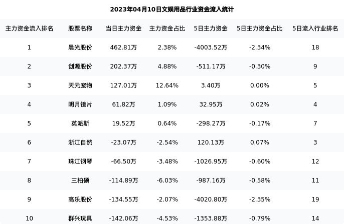 从主力资金流向来看,文娱用品行业今日主力资金流入2.03亿元,在所有申万二级行业中排名:102/131。