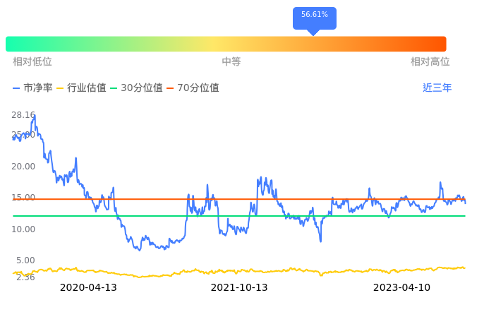 2023年04月10日,金运激光下跌4.78%收于11.35,今日成交金额5709.84万元。下文将从市盈率PETTM、市净率PB、市现率3个角度去分析公司估值情况。