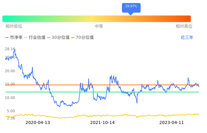 2023年04月11日,金运激光上涨1.59%收于11.53,今日成交金额5527.93万元。下文将从市盈率PETTM、市净率PB、市现率3个角度去分析公司估值情况。
