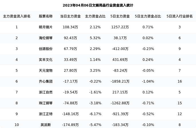 下表为今日行业内流入前10股票的信息