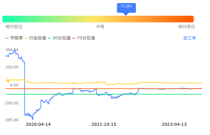 金运激光当前市现率为-36.79,在所属的文娱用品中,市现率排18,前5名分别为、创源股份市现率8.32、源飞宠物市现率14.46、广博股份市现率16.52、通达创智市现率17.06、浙江正特市现率19.41。金运激光当前市现率为-36.79,超过近3年75.28%的历史数据。
