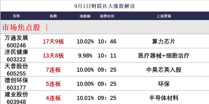 财联社9月1日讯,今日104股涨停,28股炸板,封板率为79%,天普股份7连板,德创环保5连板,建业股份4连板,三维通信、兆新股份3连板,北交所荣亿精密30cm2连板,万通发展8天5板,国光连锁、合力泰9天5板,凯迪股份9天4板,北交所宏裕包材30cm首板。市场全天震荡分化,创业板指领涨,沪指窄幅震荡。沪深两市全天成交额2.75万亿,较上个交易日缩量483亿。盘面上,市场热点较为杂乱,个股涨多跌少,全市场超3200只个股上涨。板块方面,黄金概念、CPO、创新药、存储芯片等板块涨幅居前,保险、证券、军工、银行等板块跌幅居前。截至收盘,沪指涨0.46%,深成指涨1.05%,创业板指涨2.29%。