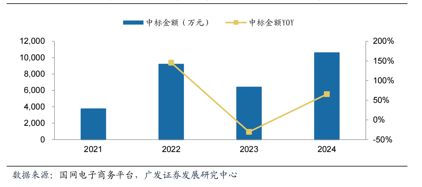 图表4:2021-2024年公司国网总部电能表(含用电信息采集)中标金额及增速