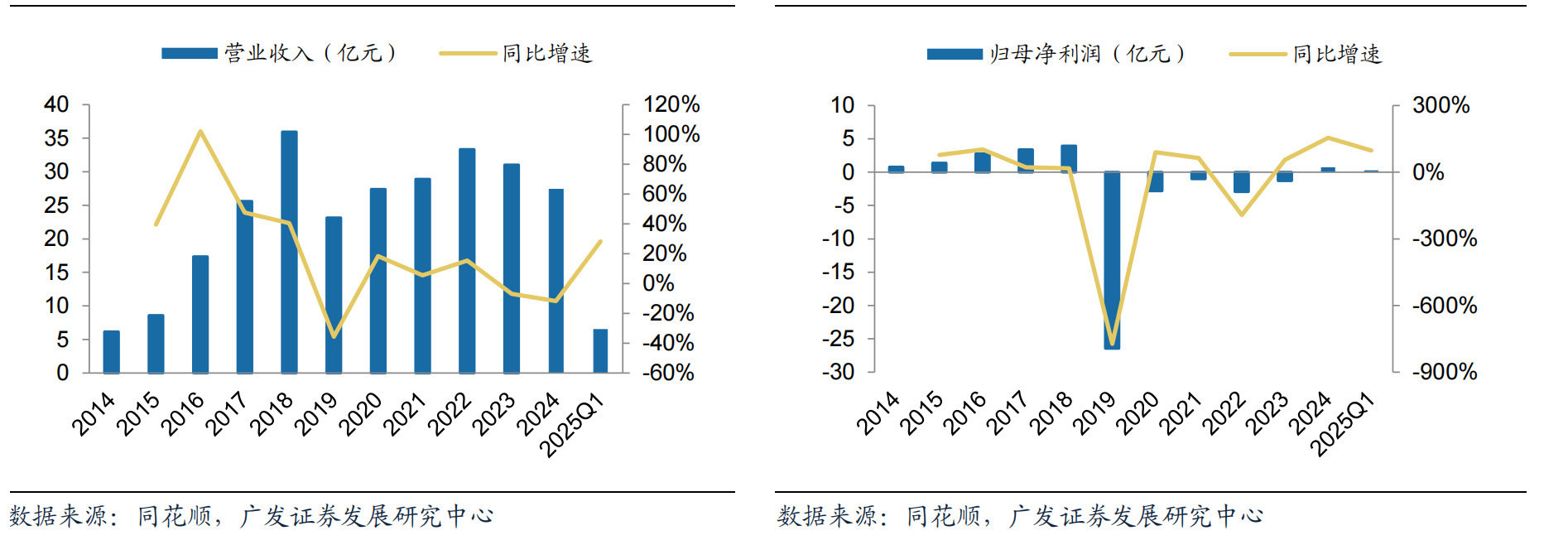 图表2:公司历年营业收入及同比增速(左) 公司历年归母净利润及同比增速(右)