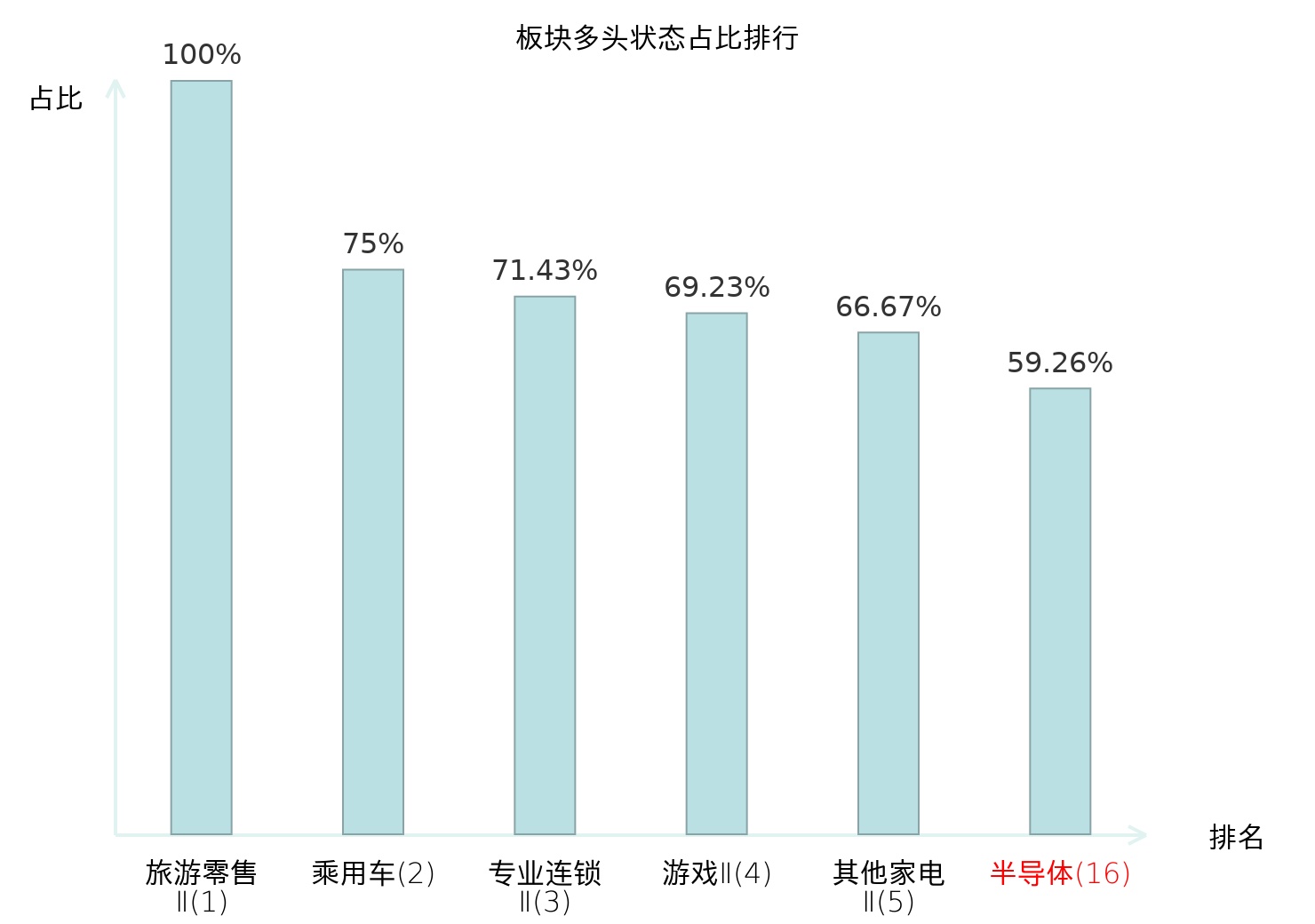 全市场所有行业板块中主力多头状态占比排名中,旅游零售Ⅱ板块位居第一。保险Ⅱ板块名次提升最快,较昨日上升82位。
