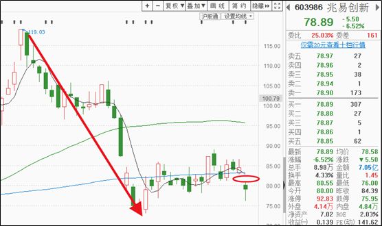 比如,芯片概念早前大涨,不少个股出现连续封板,而兆易创新在同概念中就太弱了,短期均线迟迟战不上,偏离60日均线较远,此类个股是坚决不能碰的,若持有观察几天冲不过几个接近的阻力位置也是要离场换股的。