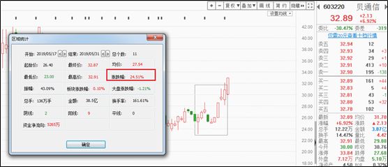 比如2019年5月的贝通信,题材(5G)+次新,连续收阳线,一波有25%左右得涨幅。