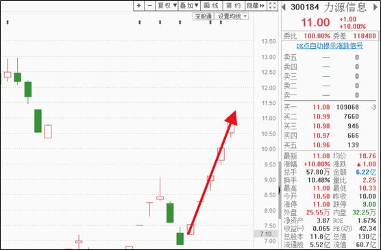 比如同样是芯片概念的力源信息北京君正,同一时间段内,力源信息五个涨停板,股价从7块涨到11块,北京君正则要弱势一些。