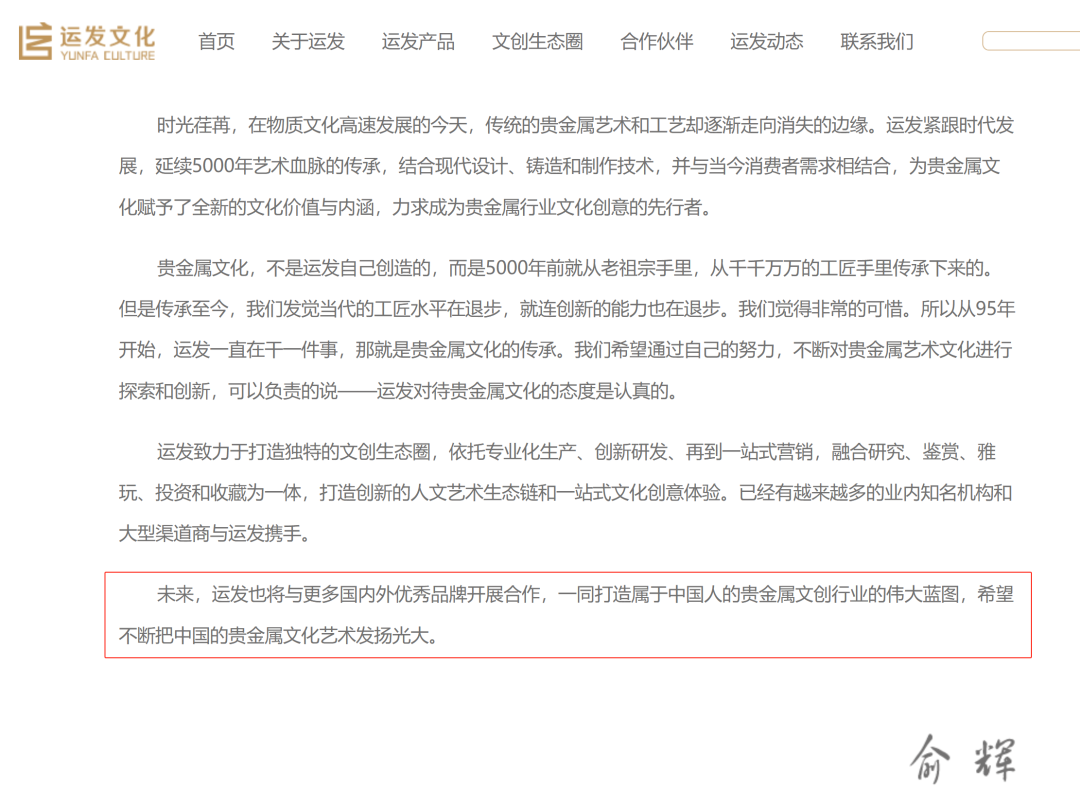 浙江运发官网称,公司是最早进入中国贵金属文创领域的企业之一,系贵金属文创产品设计方、生产商和销售商,2014年起致力于全国营销网络建设,2015年同中国银行和宁波银行的合作销售破亿元,与中国金币总公司、上海造币有限公司、上海珍宝金银饰品厂、浙江省邮政局等有长期战略合作。
