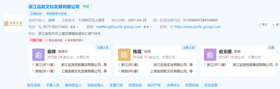 企查查显示,浙江运发成立于2001年,注册资本为11080万元,俞辉直接持有10.26%股权,通过其实际控制的浙江运发控股集团有限公司(下称“运发集团”)持股51%,为实际控制人并担任董事长、法定代表人。