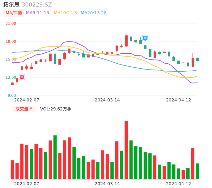 04月12日,拓尔思收报14.76,股价涨幅-3.15%,成交金额4.44亿元,换手率3.73%。