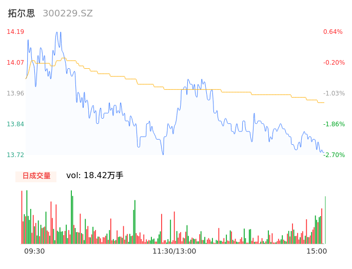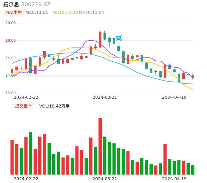04月19日,拓尔思收报13.72,股价涨幅-2.70%,成交金额2.56亿元,换手率2.32%。